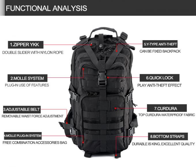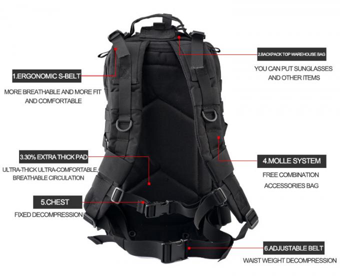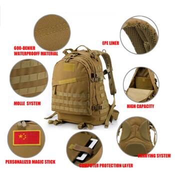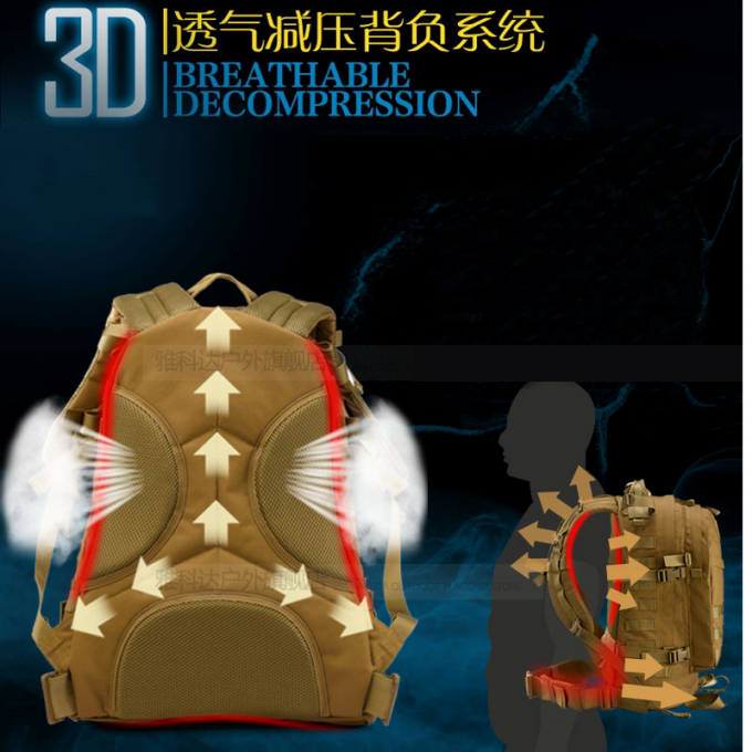 2. fonction imperméable : le matériel de sac à dos du polyester 600D, la surface a la fonction imperméable superbe, avec la couverture en nylon de pluie du sac à dos 420D là, le double imperméable, le tourisme extérieur et l'utilisation de militaires très appropriés.